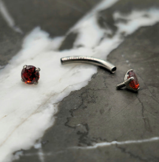 Red Cubic Zirconia Curved Barbell