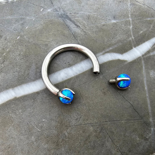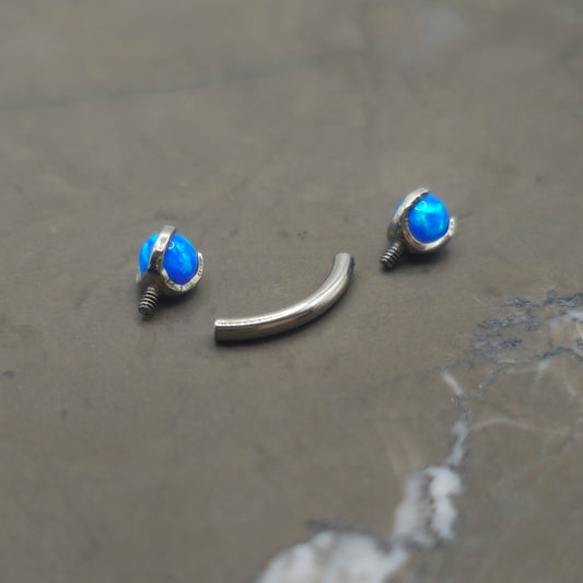 Aqua Blue Cubic Zirconia Internally Threaded Curved Barbell