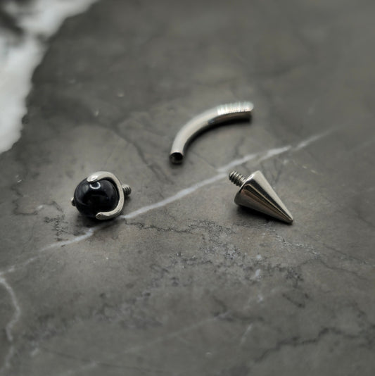 Moss Agate Stone Titanium Curved Barbell with Spike