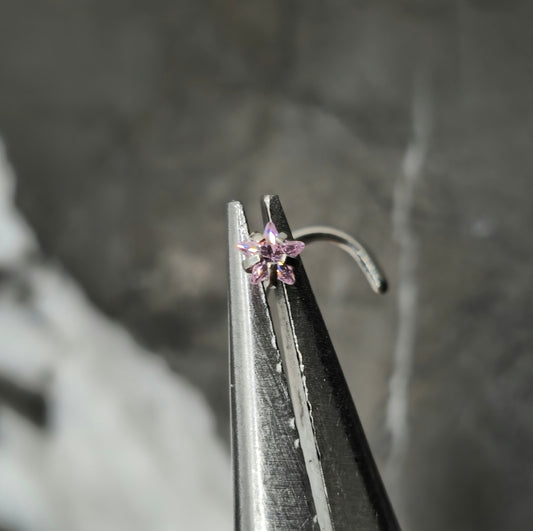 Purple Tiny 2mm Cubic Zirconia Nose Stud in 20g
