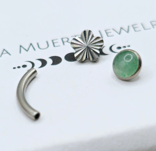 Green Jade + Groovy Flower Internally Threaded Curved Barbell