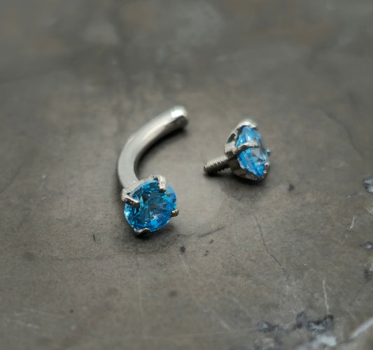Aqua Blue Cubic Zirconia Internally Threaded Curved Barbell