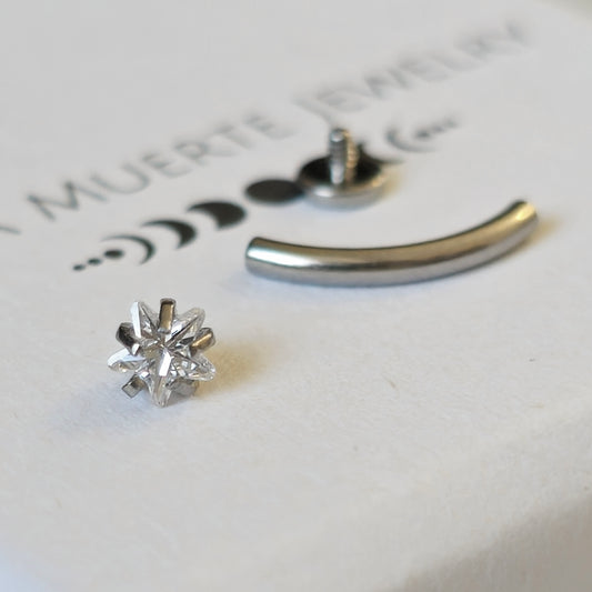 "Floating" Star Crystal Internally Threaded Curved Barbell