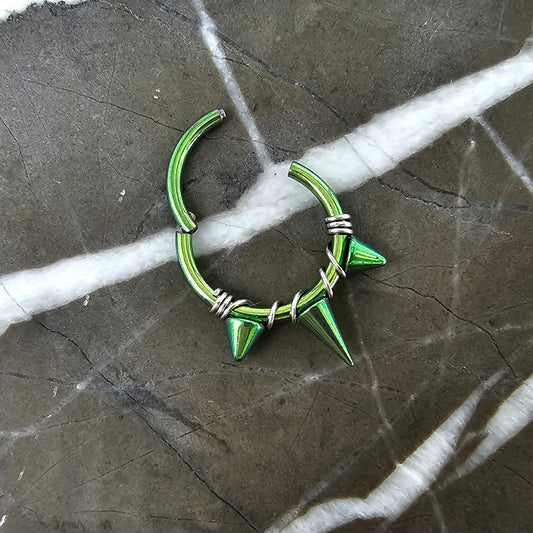 Green Titanium Triple Spike + Banded Jewelry Clicker
